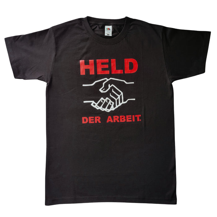 Held der Arbeit – Schwarzes T-Shirt mit farbigem Logo-Aufdruck - klassischer Unisex-Schnitt 100 % Baumwolle
