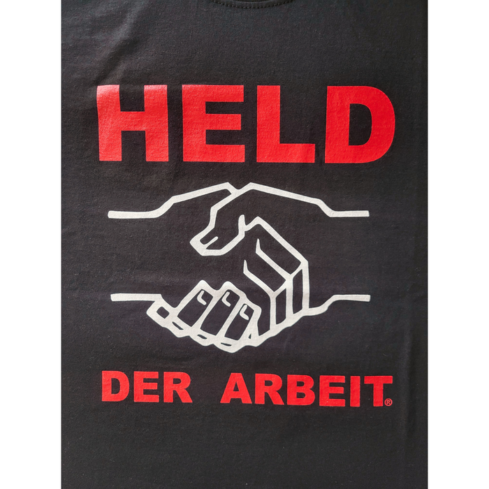 Zeig, was in dir steckt – mit dem T-Shirt „Held der Arbeit“ in klassischem Schwarz! Der farbige Aufdruck bringt nicht nur ein Stück DDR-Nostalgie zurück, sondern macht dich auch zum Eyecatcher bei jedem Anlass. Ob auf der Arbeit, im Alltag oder als Statement-Shirt – dieses Modell vereint Komfort mit Charakter.