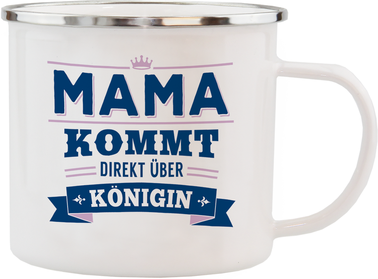 Emaille Becher (Tasse). "Mama - Kommt direkt über Königin".