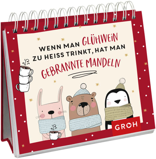 Wenn man Glühwein zu heiß trinkt, hat man gebrannte Mandeln - Spiralaufsteller - 52 Seiten - Lustiger Aufsteller für einen tierisch gechillten Advent – Ideal als kleines Geschenk für Kollegen, Familie oder Freunde