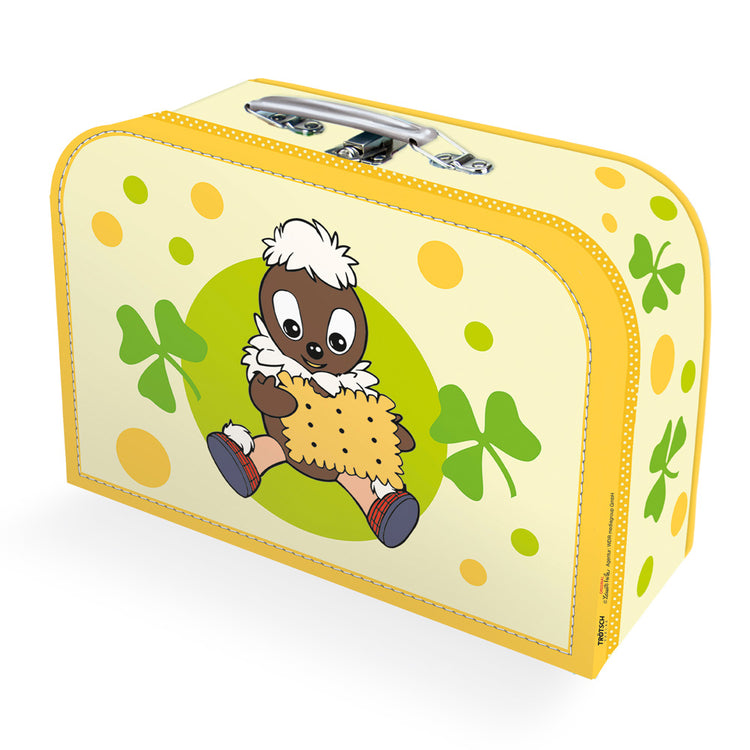 Ein wunderschöner Kinderkoffer aus Pappe mit dem kleinen Pittiplatsch beim fröhlichen Keks essen. Super geeignet für den Besuch bei der Tagesmutter, im Kindergarten oder im Hort. Der Koffer hat einen Metallhenkel und -verschluss. Größe: 19 x 14 cm