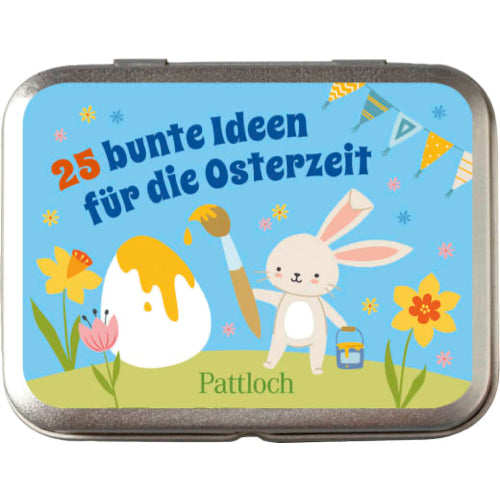 Diese liebevoll gestaltete Ideensammlung rund um Ostern sorgt für abwechslungsreiche Beschäftigung in der Osterzeit. In einer handlichen Metalldose befinden sich 25 stabile Karten mit Anleitungen und Tipps zum Basteln, Backen und Spielen. Die Ideen eignen sich für drinnen und draußen und sind mit wenig Material sowie geringem Aufwand umsetzbar.