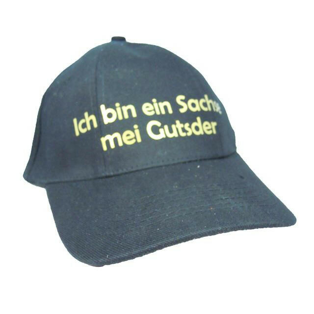 schwarzes Basecap mit goldenem Aufdruck "Ich bin ein Sachse mei Gutsder"