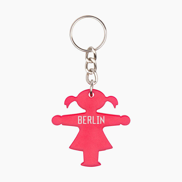 5cm großer Schlüsselanhänger mit pinker Ampelfrau & Schriftzug BERLIN, stabil und ein Hingucker
