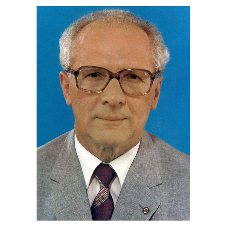 Erleben Sie ein authentisches Stück DDR-Geschichte mit unserem hochwertigen Poster von Erich Honecker, dem langjährigen Staatsratsvorsitzenden der Deutschen Demokratischen Republik (1971–1989). Das Motiv zeigt ihn in klassischer Amtsstuben-Atmosphäre – so, wie es einst in zahlreichen Büros von VEBs, LPGs und Bildungseinrichtungen hing.