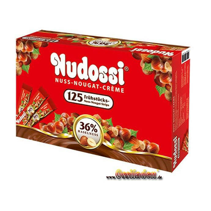 Familienpackung mit 125 x 12g Original Nudossi (mit 36% Haselnuss) einzeln eingeschweißt.