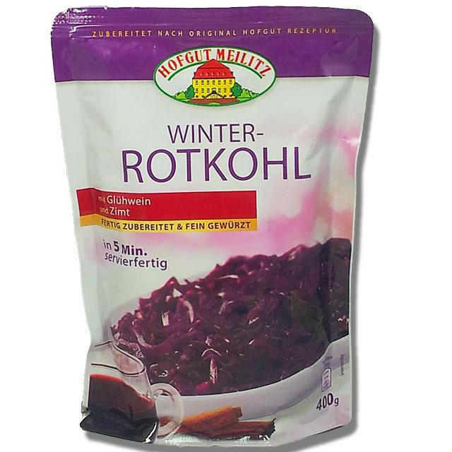 Zutaten: Rotkohl (63%), Zucker, Branntweinessig, Glühwein (5%), Salz, modifizierte Stärke, Aromen, Zimtextrakt