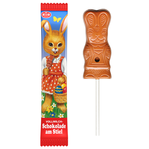 Osterhase am Stiel – Vollmilchschokolade mit mind. 30 % Kakao – Schokoladenfigur fürs Osternest 15 g