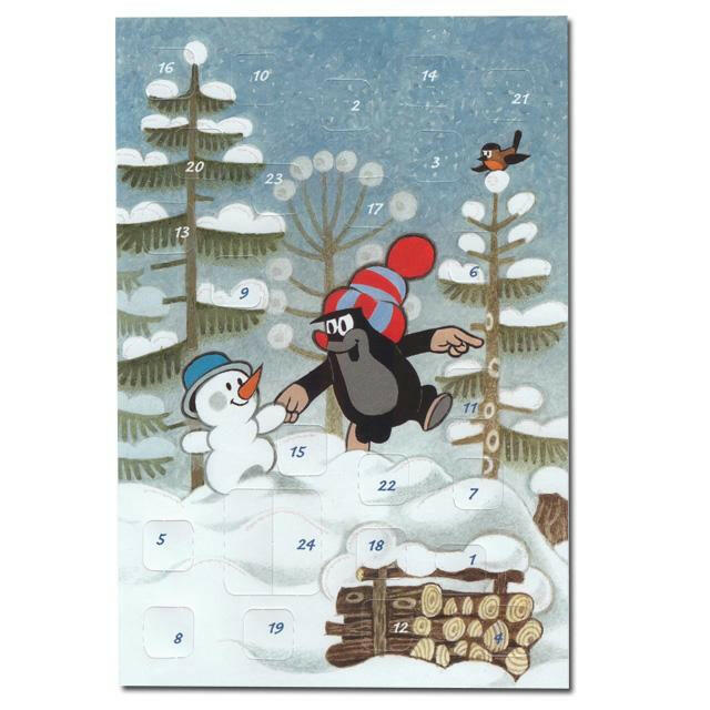 Adventskalenderkarte - Maulwurf mit Schneemann(12396)