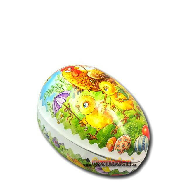 Osterei mit Nostalgiedruck gefüllt mit 10x5g Thüringer Minis (30% Kakao)