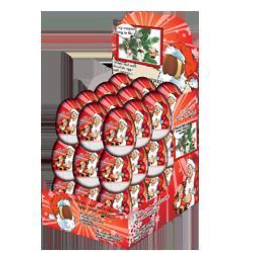Die Weihnachts-Schokoladen-Eiern sind auch im 36er Display erhältlich. In jedem Ei ist eine weihnachtliche Sammelfigur mit Anhänger, die in der Dunkelheit leuchten und auch als Baumschmuck verwendet werden können.