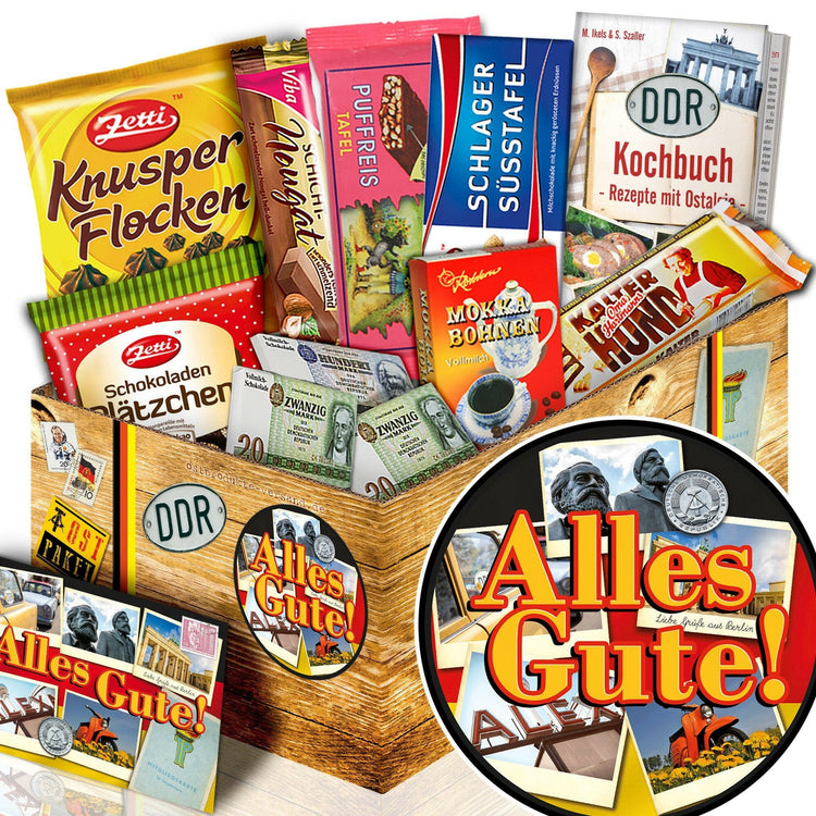 Hier erhalten Sie das Ostpaket "Schokoladenbox M" mit verschiedenen, nostalgisch, schokoladigen Produkten.