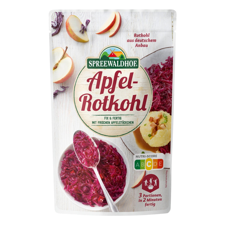 Servierfertig in nur 2 Minuten. Genießen Sie den einzigartigen Geschmack von Rotkohl mit frischen Apfelstücken!