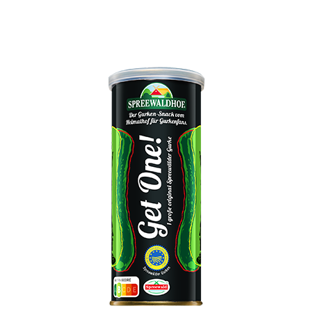 Cool und knackig präsentiert sich dem Gurkenliebhaber hier eine echte Spreewälder Gurke in der attraktiven Ringpull-Weißblech-Dose. "Get One!" ist der erfrischende und kalorienarme Snack für zwischendurch oder der knackige Partyspaß.