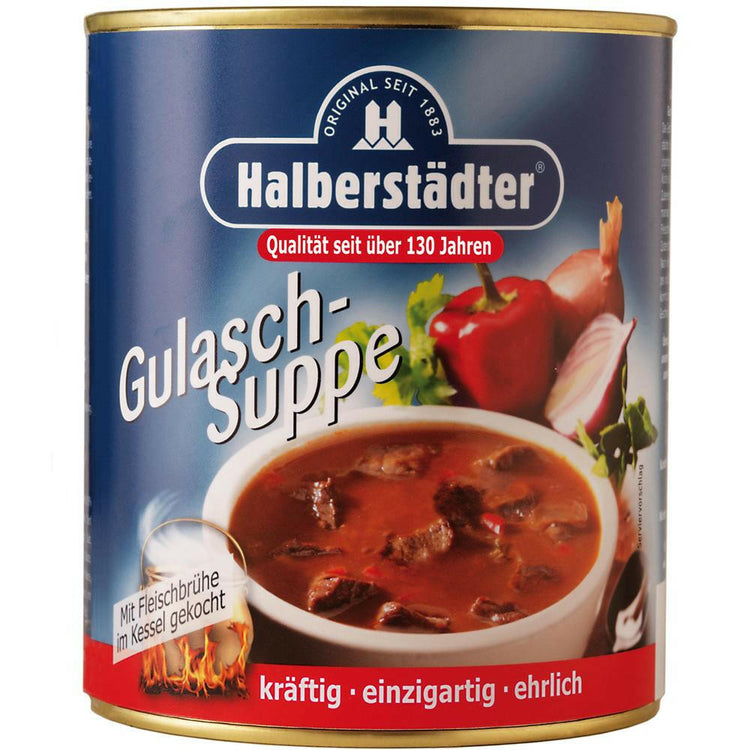 Halberstädter Gulaschsuppe 800 ml – kräftige Suppe aus Rindfleisch & Gewürzen, im Kessel gekocht – Halberstädter Qualität