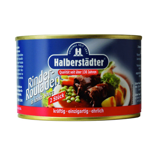 Halberstädter 2 Rinderrouladen, 400g Dose tafelfertig in schmackhafter Soße.