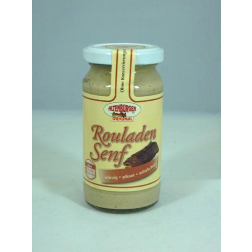Rouladen Senf ideale Begleiter zu allen gegrillten und deftigen Wurst- und Fleischspezialitäten, eignet sich vorzüglich zur Verfeinerung von Rouladen.