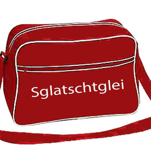 Retrotasche in rot mit weissem Aufdruck Sglatschtglei Modischer Retro - Look - Fronttaschen mit Reißverschluss - Verstellbarer Schultergurt - Kontr...