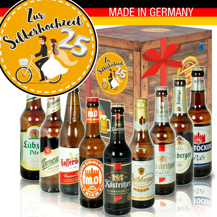 Zur Silberhochzeit - Geschenkbox "DDR Bier" 9er Set