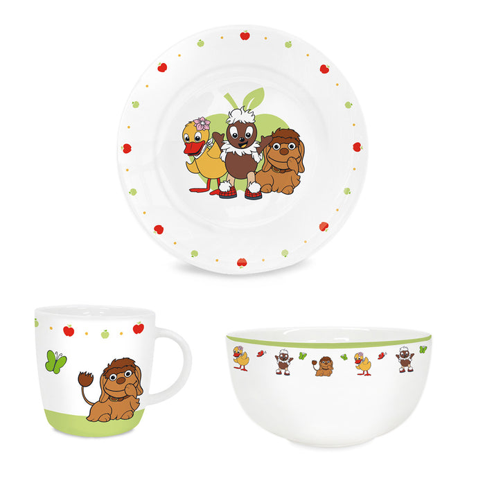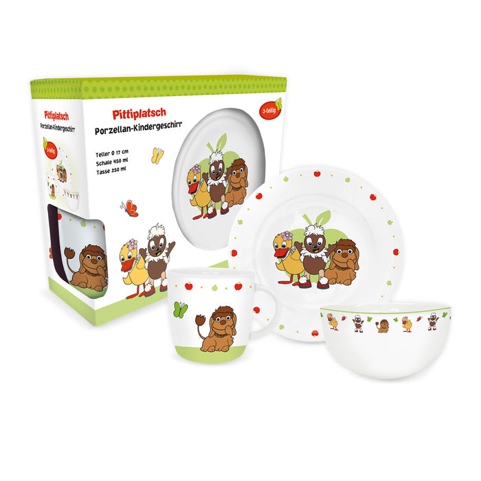 3tlg.Geschirrset Pittiplatsch - Teller, Tasse und Schüssel