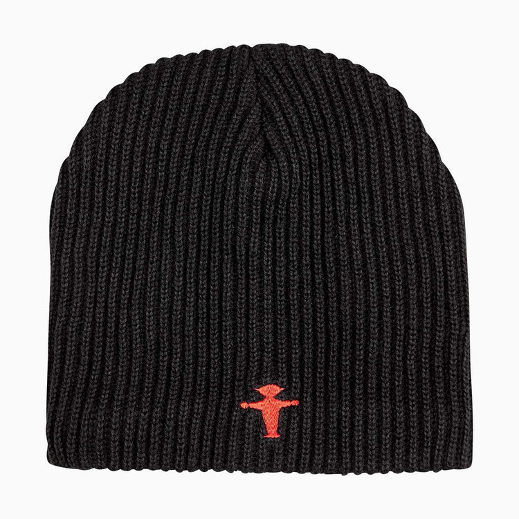 Schwarze Kuschelmütze in Einheitsgröße mit rotem Ampelmann-Motiv Steher
