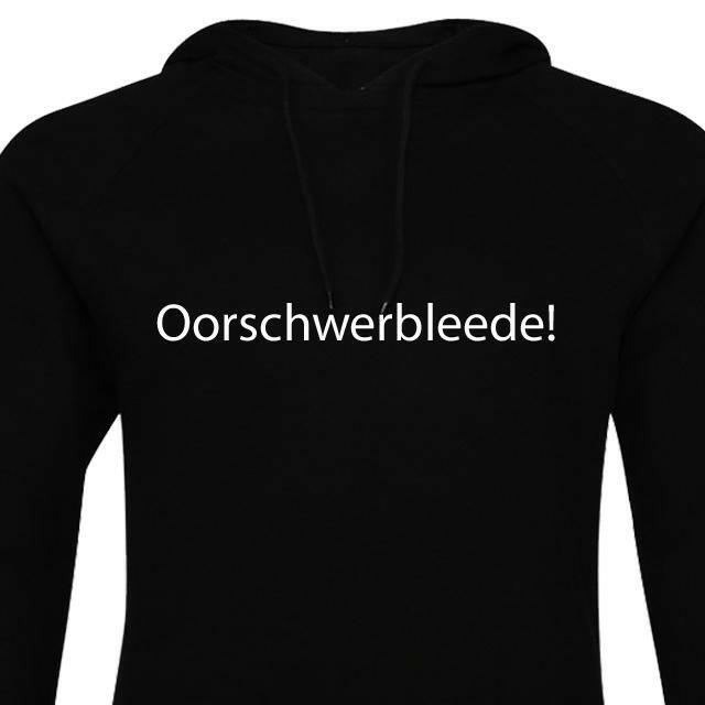 Schwarzer Kapuzensweater mit weissem Aufdruck Oorschwerbleede