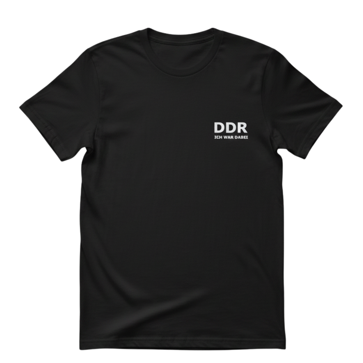 T-Shirt "DDR ICH WAR DABEI" schwarz schwarz mit weißem Schriftzug - Unisex klassischer Schnitt - 100% Baumwolle