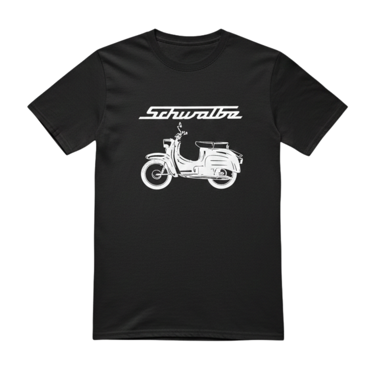 T-Shirt schwarz mit weißem Schwalbe-Logo & -Schriftzug - Unisex klassischer Schnitt - 100% Baumwolle