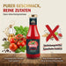 Der Geschmack dieses Tomatenketchups wird Sie sofort überzeugen. Durch den reduzierten Zuckeranteil im Vergleich zu herkömmlichen Ketchups ist er nicht nur geschmacklich herausragend, sondern auch ernährungsbewusst. Kein Wunder, dass dieser Tomatenketchup ebenfalls mit dem begehrten DLG Gold ausgezeichnet wurde. Gönnen Sie sich den Luxus eines hochwertigen Tomatenketchups und verleihen Sie Ihren Gerichten einen Hauch von Exklusivität!