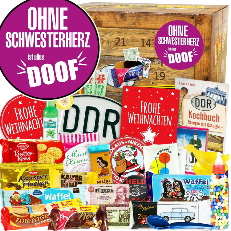Ohne Schwesterherz - DDR Adventskalender 2025 mit Kultartikeln von Zetti, Dr. Quendt, Komet & Pfeffi – 24 nostalgische Überraschungen für Ostalgie-Fans