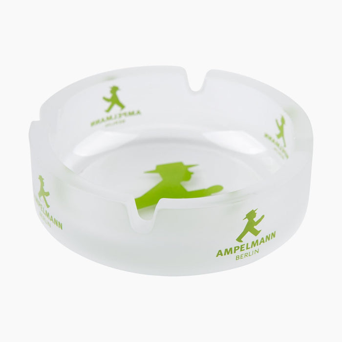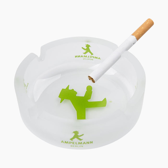 Runder Glas-Aschenbecher ca. Ø 10 cm mit grünen Ampelmann