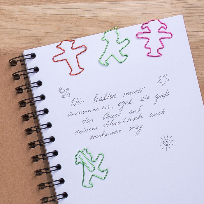 18 außergewöhnliche Büroklammern finden ihren Einsatz sowohl in der privaten, als auch in der geschäftlichen Post. Geher, Steher und Ampelfrau halten alles zusammen und bringen Farbe in den Allltag. Sie eignen sich hervorragend als Geschenk.