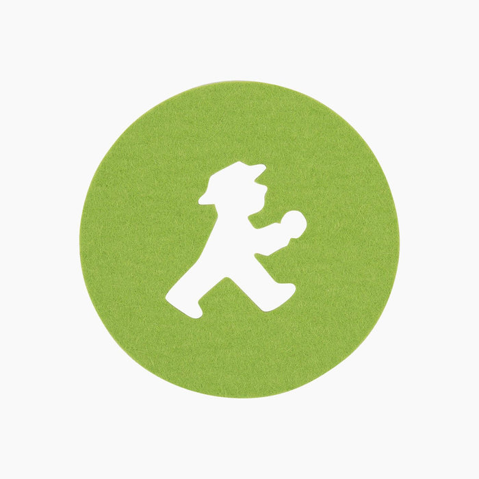Hochwertiger grüner Filz-Untersetzer - Ø10cm - mit weißen Ampelmann