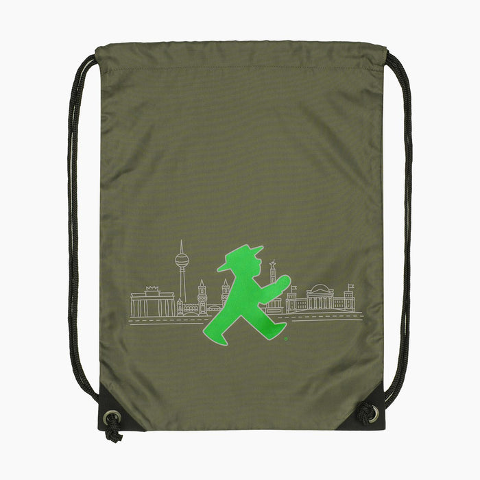Olivgrüner Turnbeutel - reflektierend - mit Ampelmann, Größe: 33x45 cm