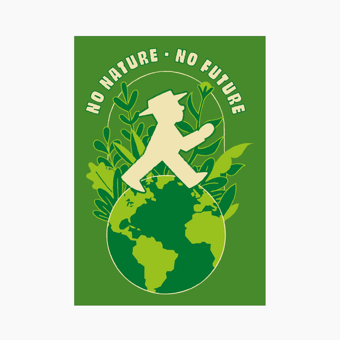 Grüne Ampelmann-Postkarte mit Botschaft "NO NATURE - NO FUTURE" in DIN A6