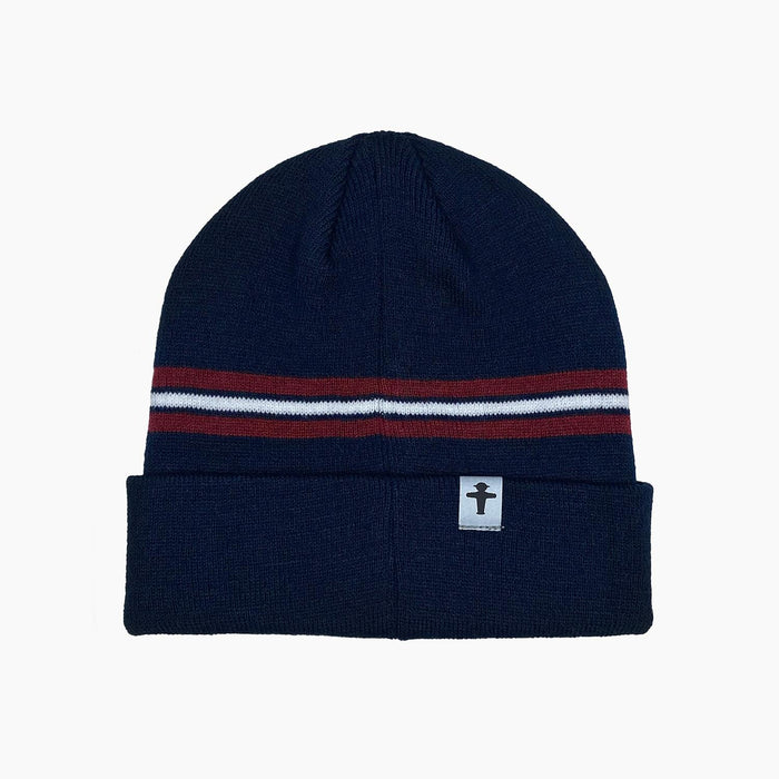 Unsere warme Mütze ist die perfekte Begleitung für den kalten Winter. Der WINTERFREUND in dunkelblau mit roten & weißen Streifen passt sowohl zu modischen Mädchen als auch zu coolen Jungs. Runde dein Outfit mit den passenden Handschuhen ab.