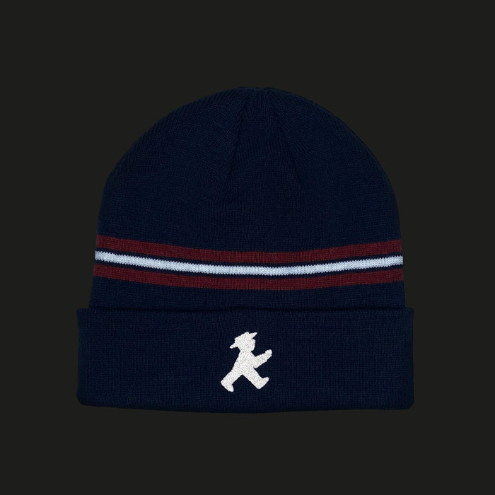 Dunkelblaue Mütze mit rot/weißen Streifen -One Size- Motiv Ampelmann Geher in silber
