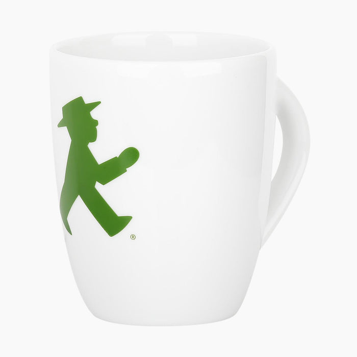 • Weiße Porzellantasse mit grünem AMPELMANN „Geher“-Motiv