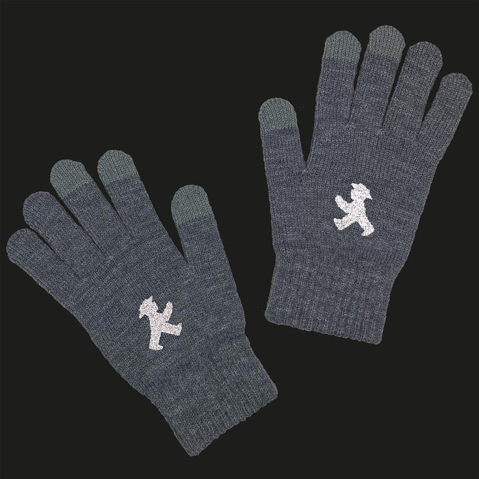 Wärmende dunkelgraue Handschuhe reflektierend in Gr. S/M Ampelmann aufgestickt