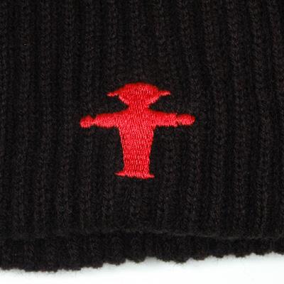Schwarze Kuschelmütze in Einheitsgröße mit rotem Ampelmann-Motiv Steher