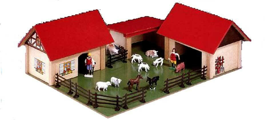 Bauernhof aus Sperrholz mit abnehmbaren Dächern, 12-teiligen Zubehör, voll dekoriert