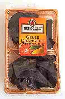 250 g Packung Berggold Gelee Orangen + Zitronen, mit Schoko-Überzug