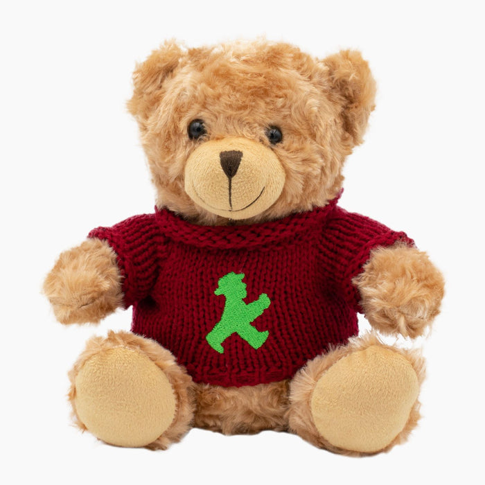 - Weicher Plüschbär mit dunkelrotem AMPELMANN-Pullover