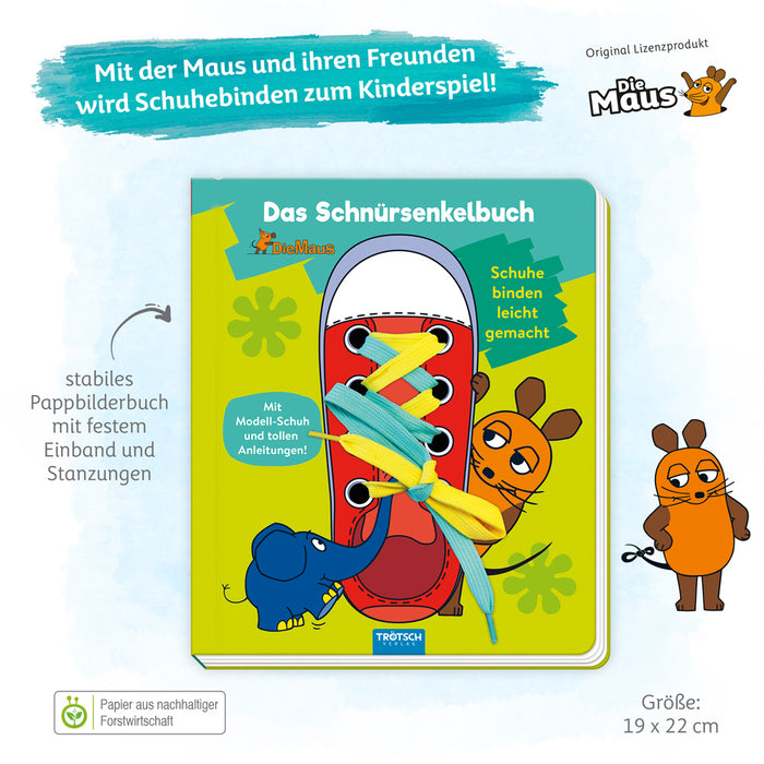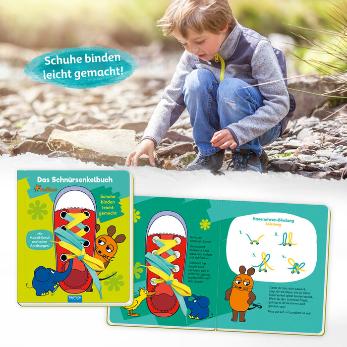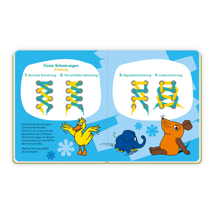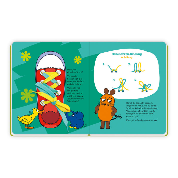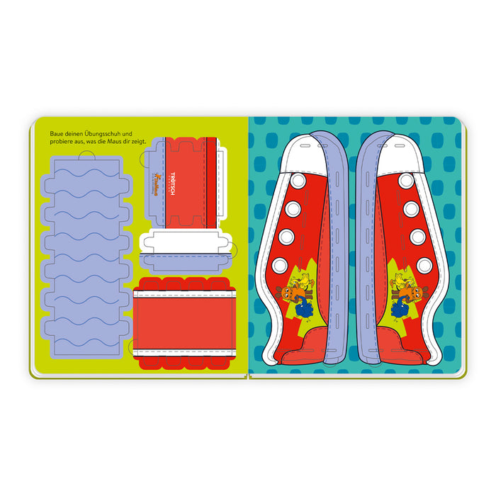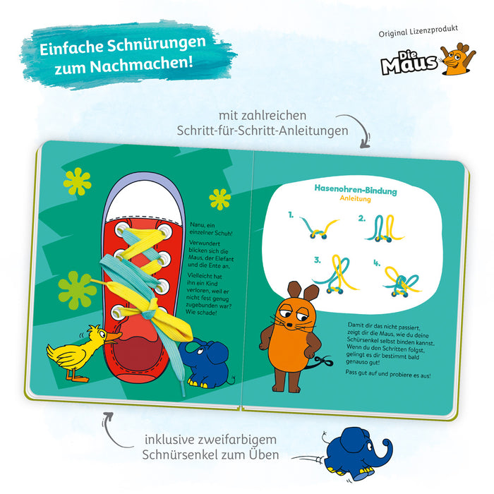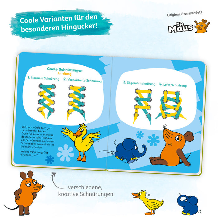 Ein verlorener Kinderschuh bringt die Maus und ihre Freunde auf eine Idee: Sie möchten dir verschiedene Möglichkeiten zeigen, wie du deine Schnürsenkel binden kannst. Probiere es aus und lerne spielend leicht deine Schuhe selbst zu binden. Für den Kindergarten und die Vorschule geeignet. Mit Pappschuh zum Basteln und echten Schnürsenkeln für ein spielerisches Lernen.