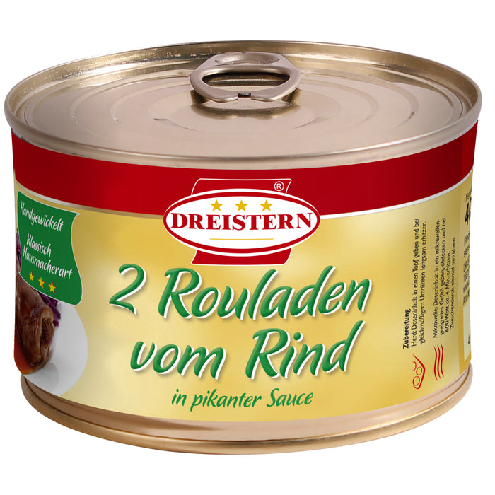 Dreistern Rinderrouladen 400g – 2 handgerollte Rouladen mit klassischer Füllung in pikanter Bratensauce – Hausmacher Qualität, schnell zubereitet & lange haltbar - 400g