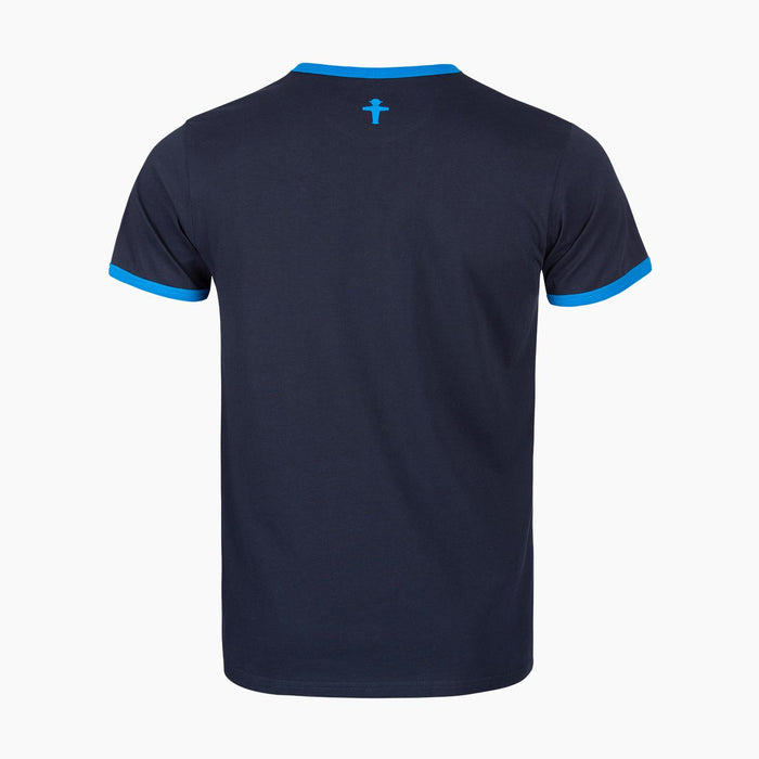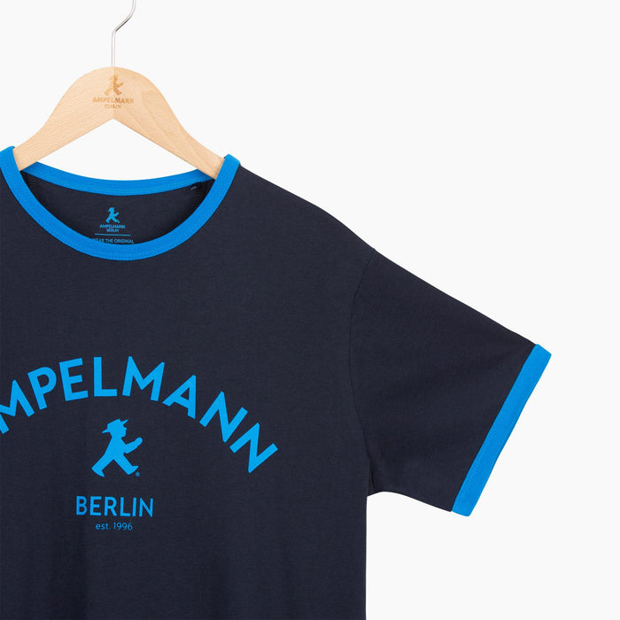 Dunkelblaues Ampelmännchen T-Shirt mit Schiftzug AMPELMANN & BERLIN - Unisex - mit hellblauen Farbakzenten - Baumwolle
