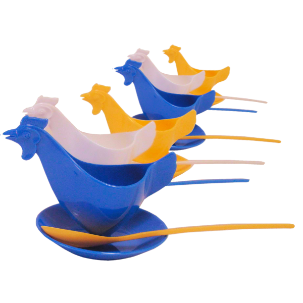 Eierbecher von Sonja-Plastic - so macht Frühstück Spaß! Frühstücks Set! Das Kultprodukt aus dem Osten. Der Hühnereierbecher war in jeder Küche zu Hause! Neue Plastikhuhn Produktion, Made in Ostdeutschland, Sonja Plastic !