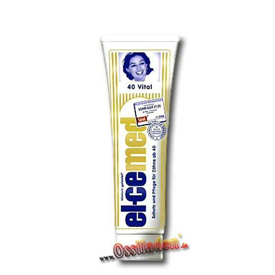 el-ce med 40 Vital unterstützt durch den eingesetzten Aktivkomplex aus Vitaminen, Allantoin und Fluorid die Vorsorge gegen Karies, Parodontose und Zahnstein. Bei regelmäßiger Anwendung der Zahncreme el-ce med 40 Vital werden Zähne und Zahnfleisch entsprechend den Bedürfnissen alterer Verwender optimal gepflegt.