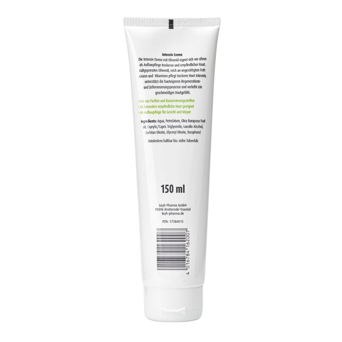 Genießen Sie die luxuriöse Pflege mit Leyhs Intensivcreme, angereichert mit Olivenöl und sagen Sie trockener, empfindlicher Haut Lebewohl.