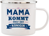 Weiße Emaille-Becher / Kaffee-Tee-Tasse "Mama kommt direkt über Königin" für 500ml Heiß-oder Kaltgetränke - Spülmaschinengeeignet